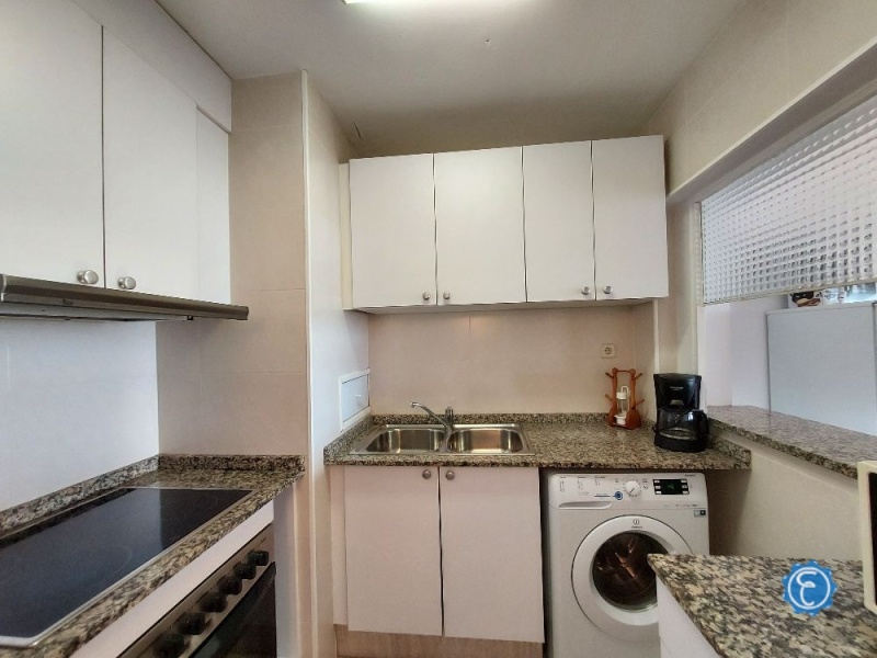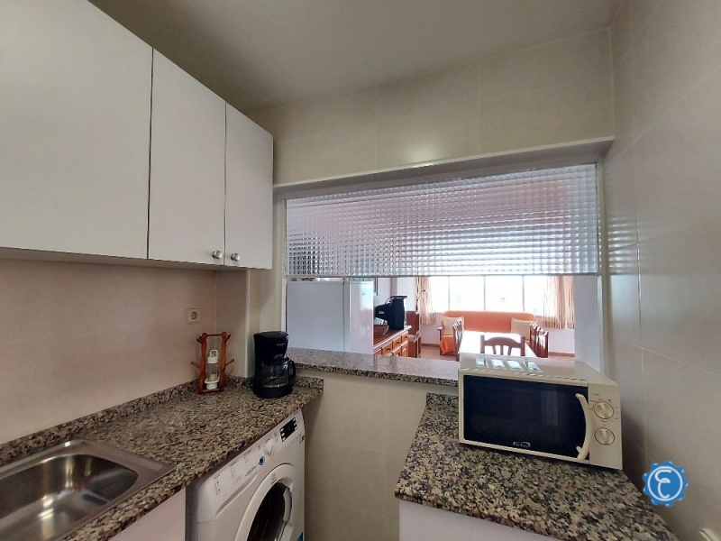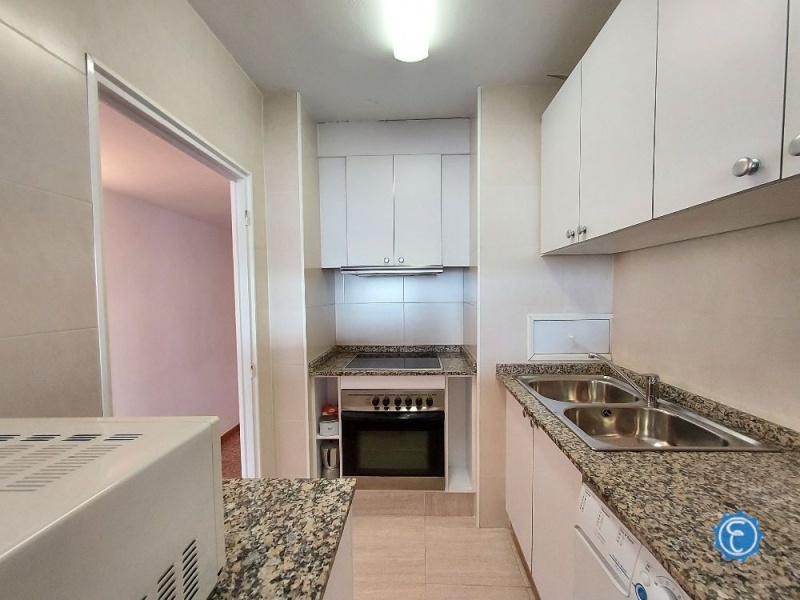 Cuenta con 70 m2 construidos aproximadamente (61 m² útiles) distribuidos en: Recibidor, salón-comedor luminoso con salida a una amplia terraza con vistas directas al mar, cocina semiabierta renovada, 1 baño con ducha renovado y 3 dormitorios (originalmente eran 2). Los dormitorios cuentan con armario y todos dan a calle.