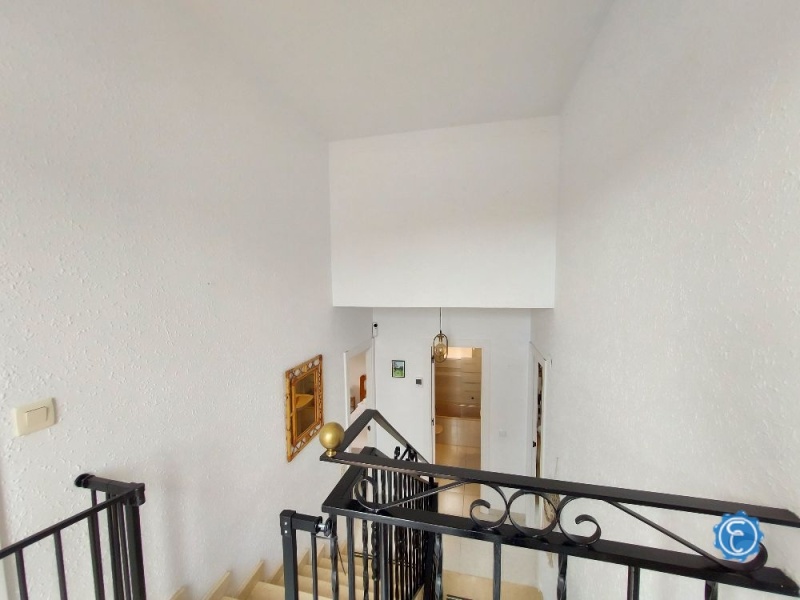 Dispone de recibidor, amplio salón-comedor con chimenea cerrada, cocina, 4 dormitorios dobles con armarios empotrados y 3 baños (uno de ellos en el garaje).