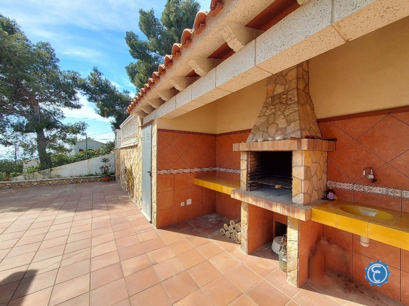 En el exterior, la propiedad ofrece múltiples espacios para disfrutar: terraza cubierta con preciosas vistas al mar, terraza-solárium con panorámicas espectaculares —perfecta para contemplar espectaculares amaneceres y atardeceres—, zonas ajardinadas con árboles frutales y plantas, así como áreas pavimentadas con barbacoa de obra y zona de lavadero.